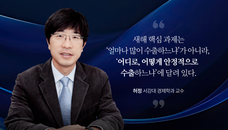 허정 “무엇보다 반도체와 자동차 산업 안정화가 중요하다고 본다. 반도체는 메모리 중심에서 벗어나 AI 반도체와 패키징 등 고부가 공정의 출하를 확대해야 한다. 자동차는 전기차, 배터리, 소프트웨어, 전자 부품 중심으로 수출 포트폴리오를 재편할 필요가 있다. 정부는 금융·세제 지원을 신속히 집행하고, 무역보험 확대와 원산지·환경 인증 대응, 물류비 완화 등 현장 중심 지원책을 강화해야 한다. 특히 중소·중견기업이 새로운 규제나 인증 절차에 막히지 않도록 효율적 수출 지원 체계를 가동해야 한다. 지역 다변화와 시장 포트폴리오 조정도 병행돼야 한다. 미국은 여전히 큰 시장이지만 규제와 관세 리스크가 크다. 유럽의 친환경 수요, 아세안의 인프라, 중동의 전력 및 에너지 프로젝트 등의 수요가 늘고있다. 모두 한국이 기술력과 신뢰를 바탕으로 경쟁할 수 있는 분야다. 새해 핵심 과제는 ‘얼마나 많이 수출하느냐’가 아니라, ‘어디로, 어떻게 안정적으로 수출하느냐’에 달려 있다.”